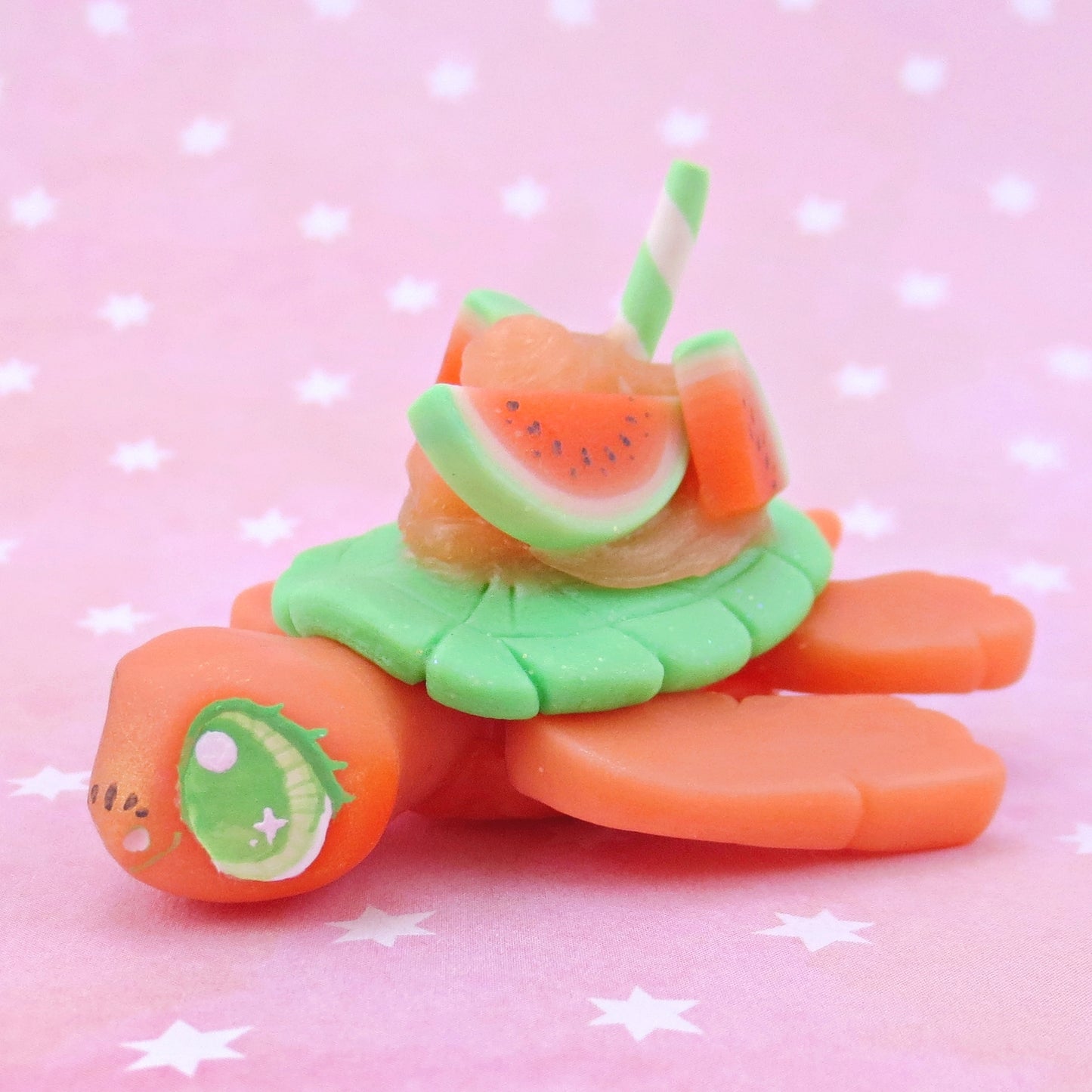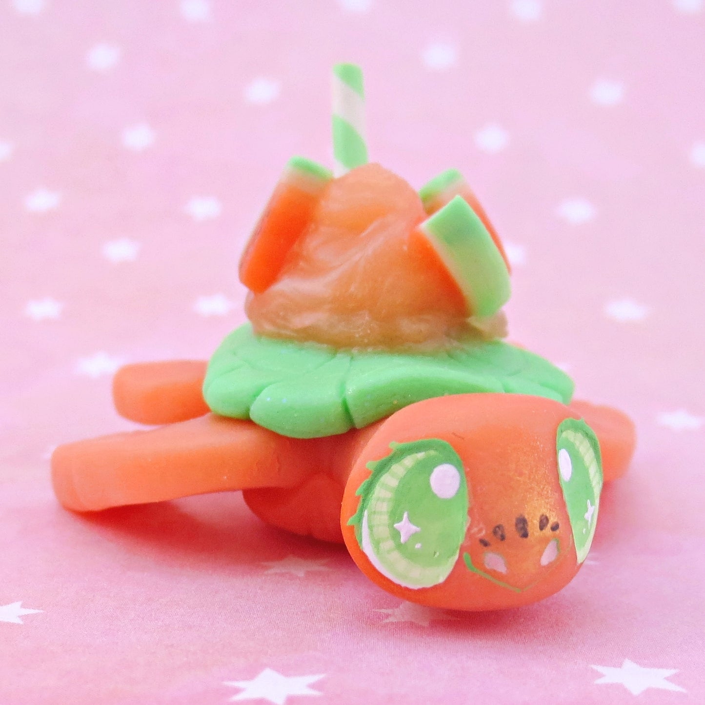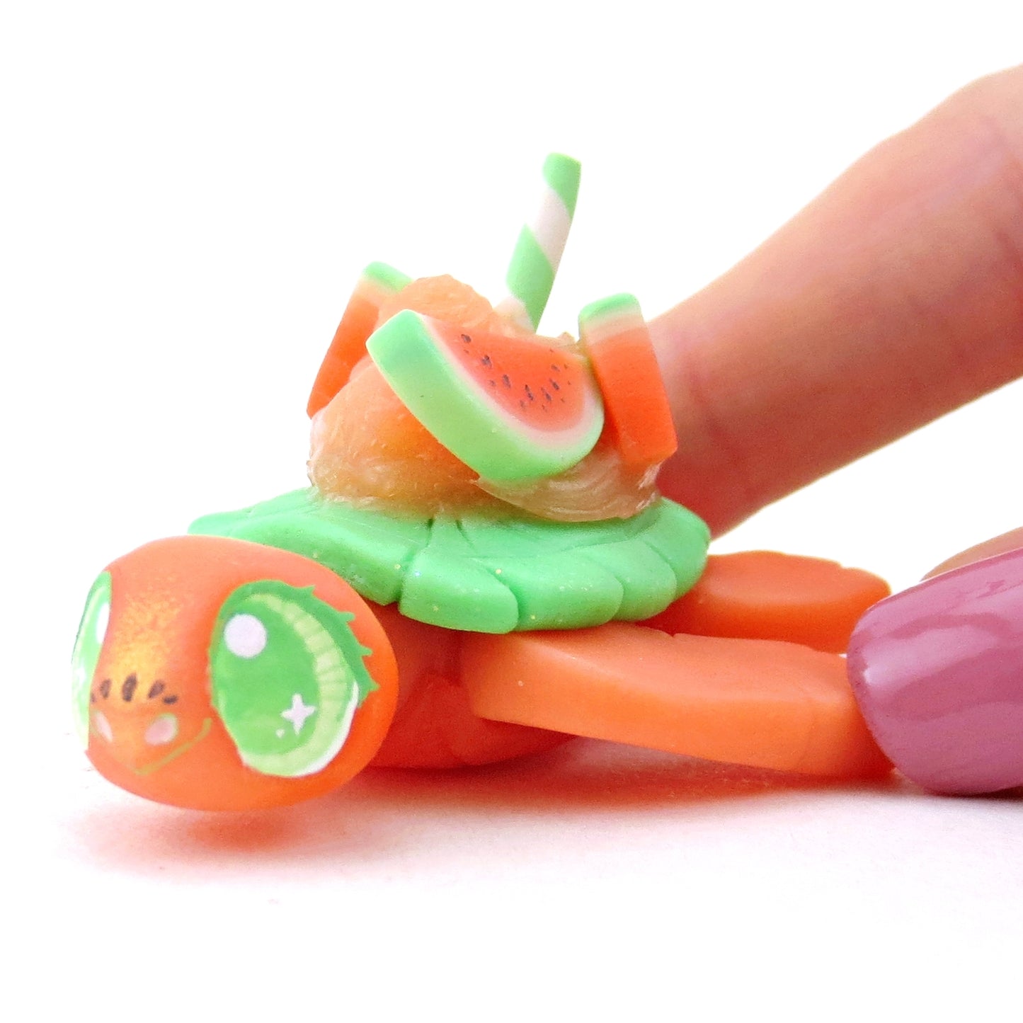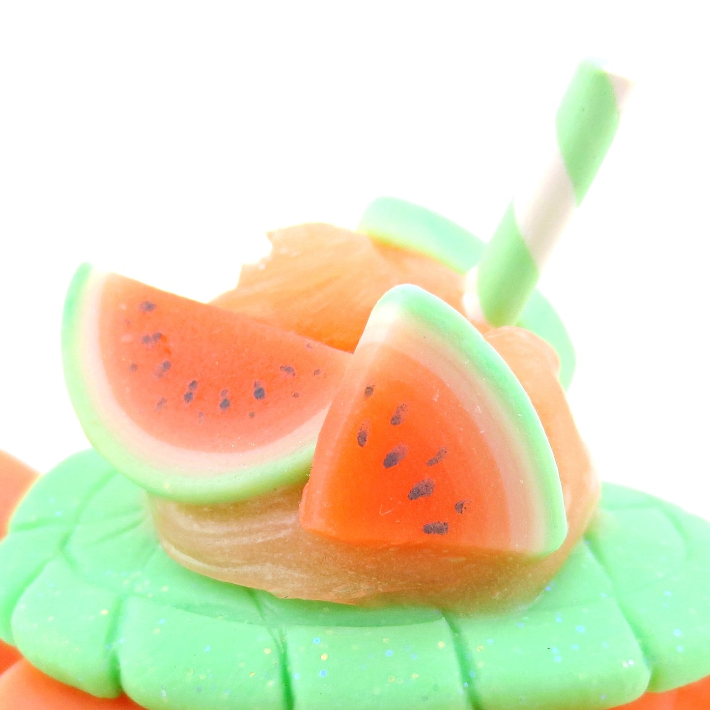 Watermelon Smoothie Turtle Figurine - Polymer Clay Food and Dessert Animals