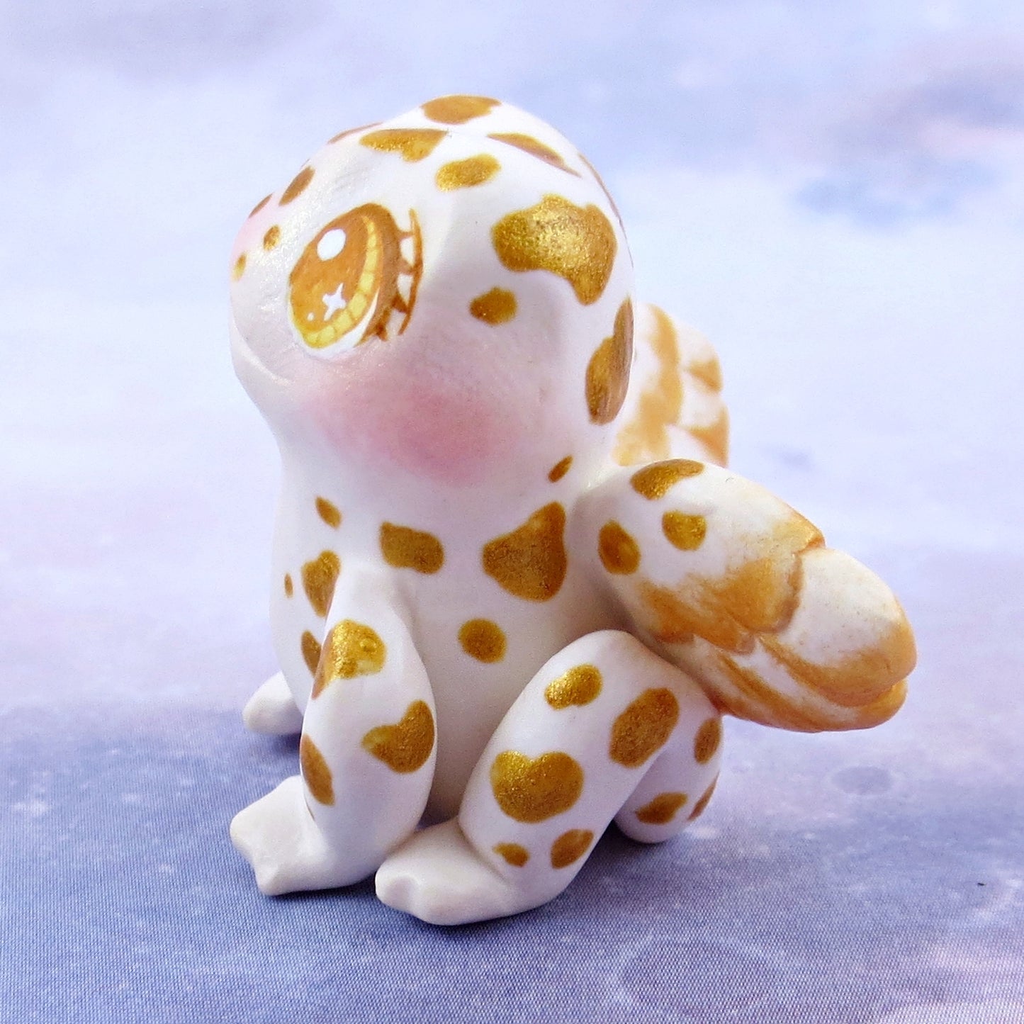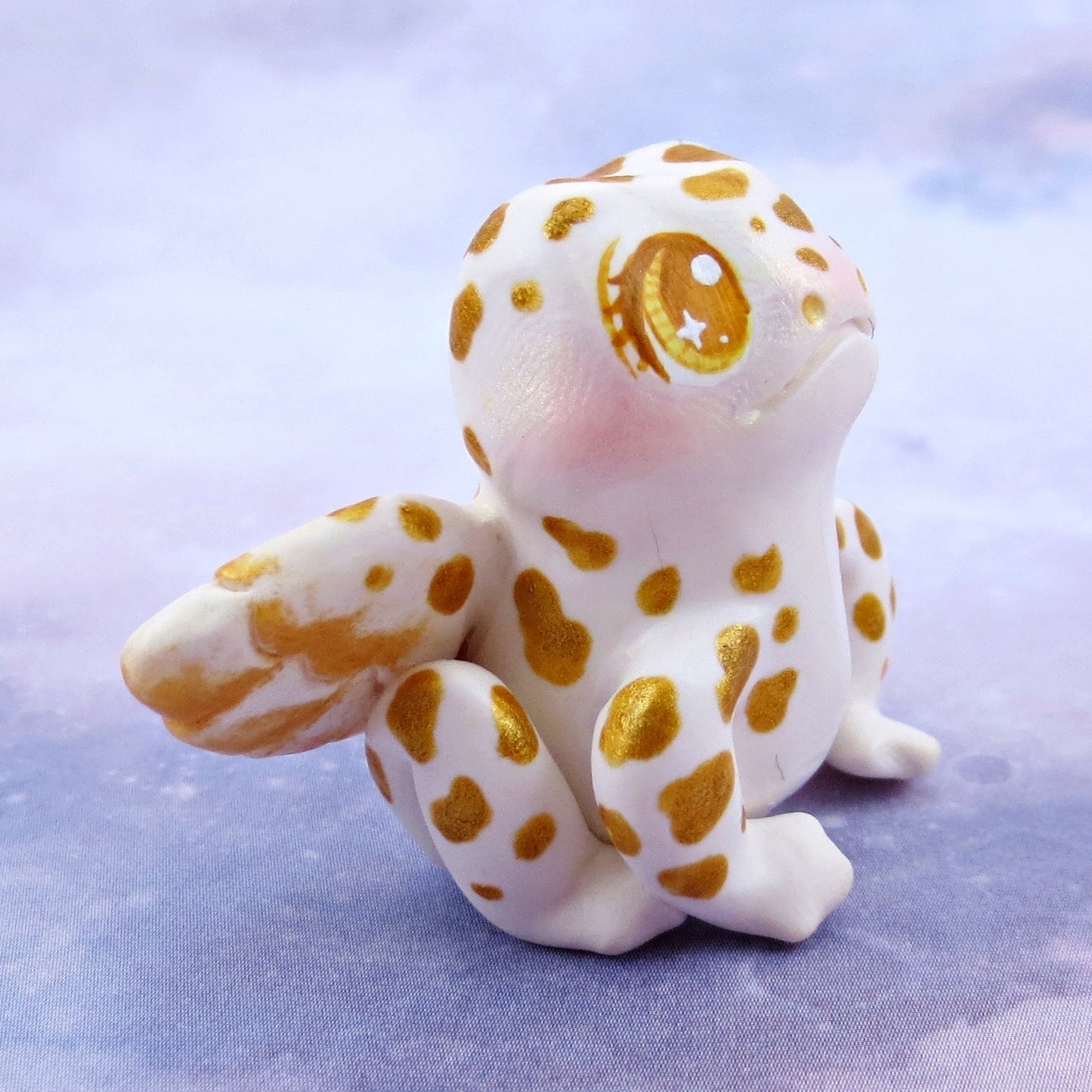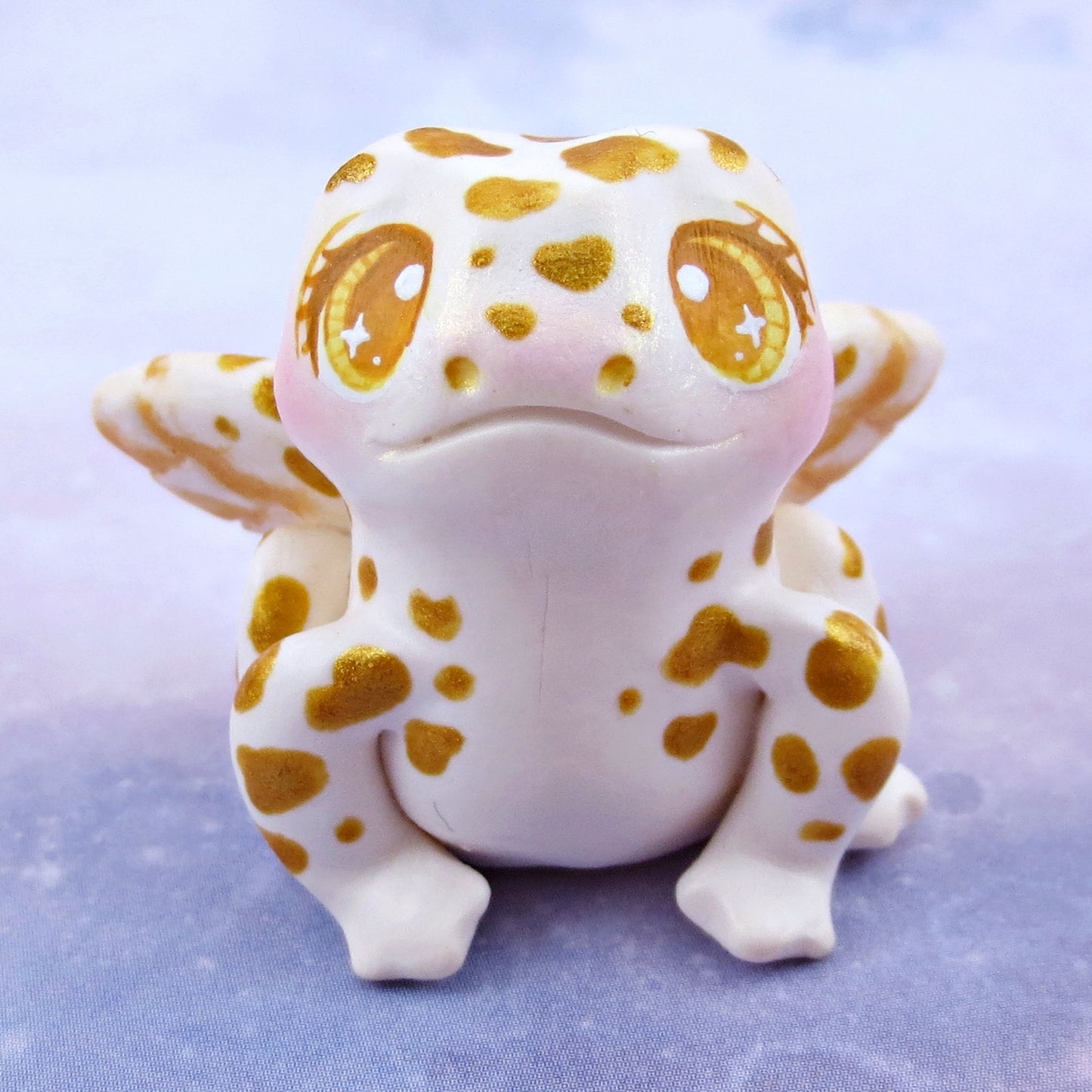 White and Gold Fairy Frog Figurine - Polymer Clay Animals Celestial Collection