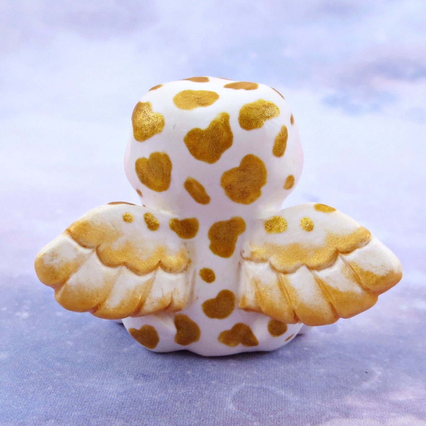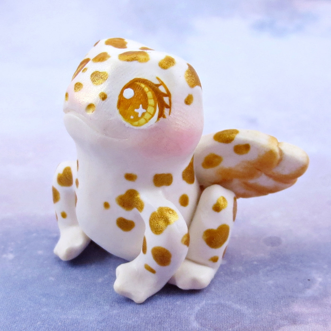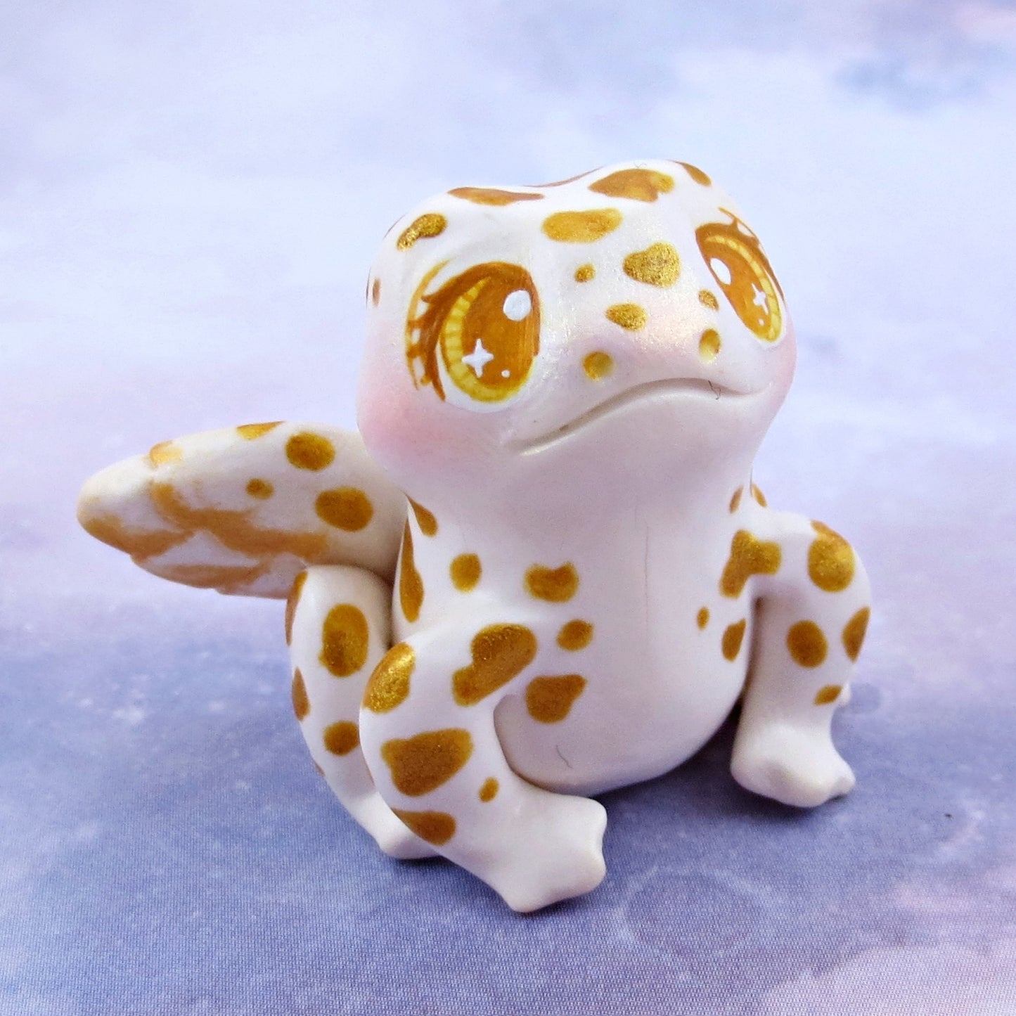 White and Gold Fairy Frog Figurine - Polymer Clay Animals Celestial Collection