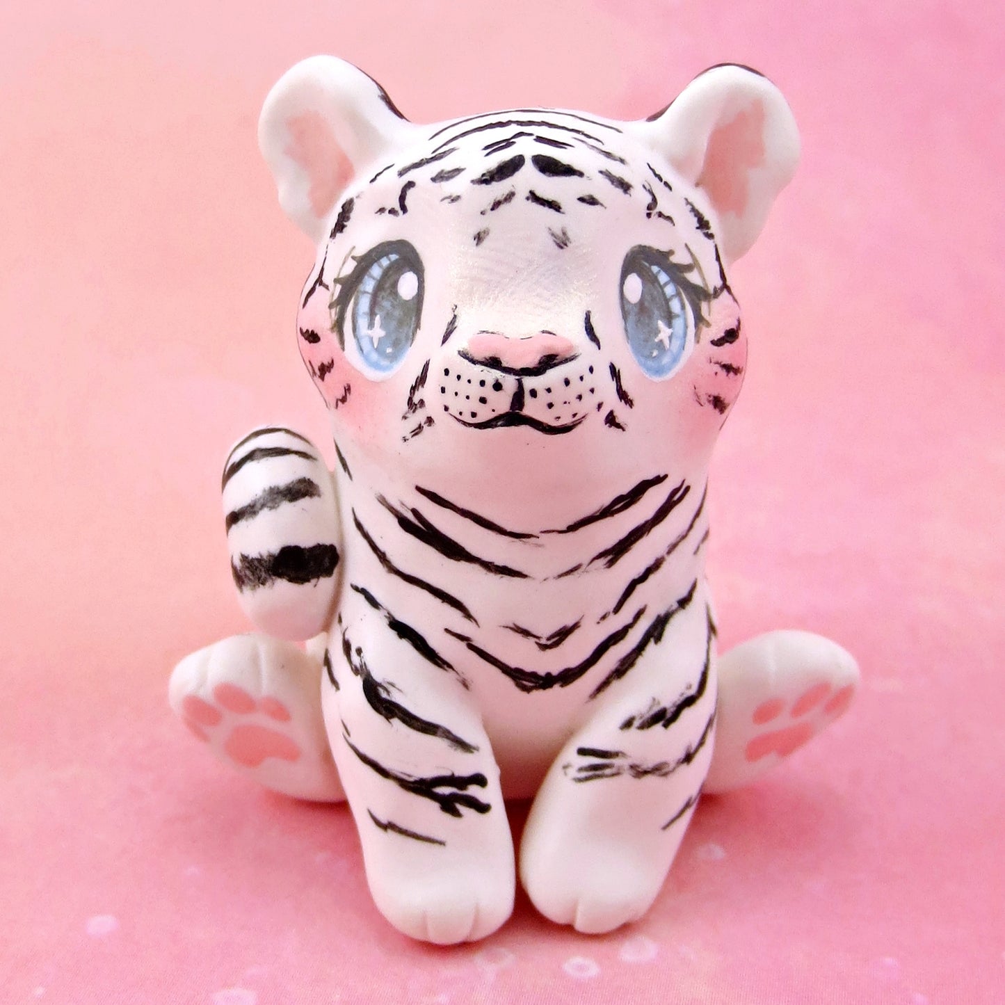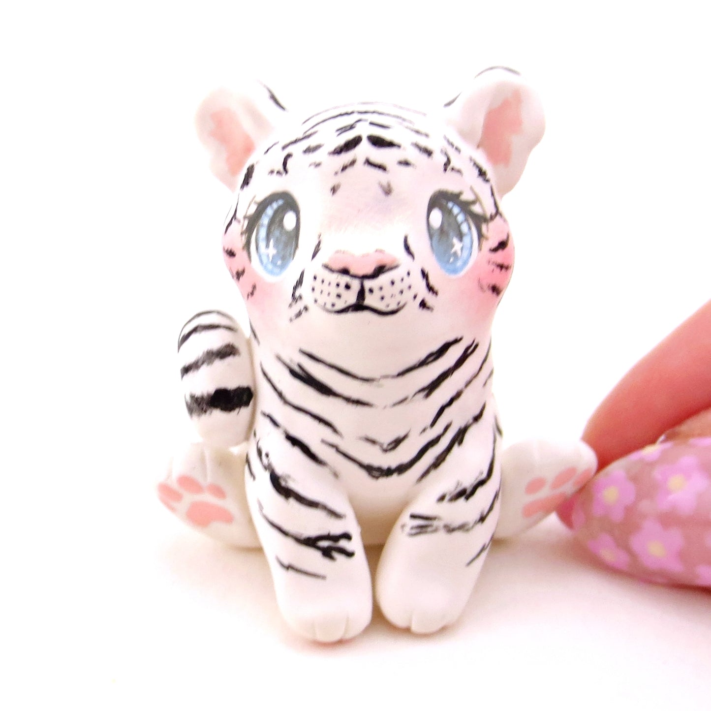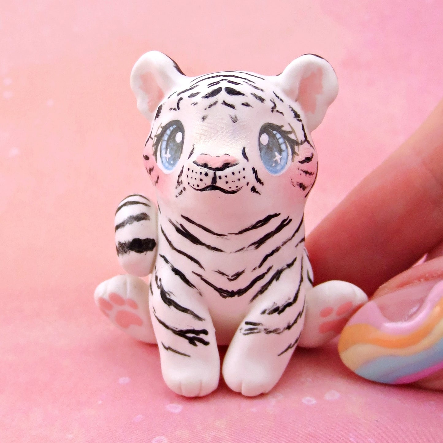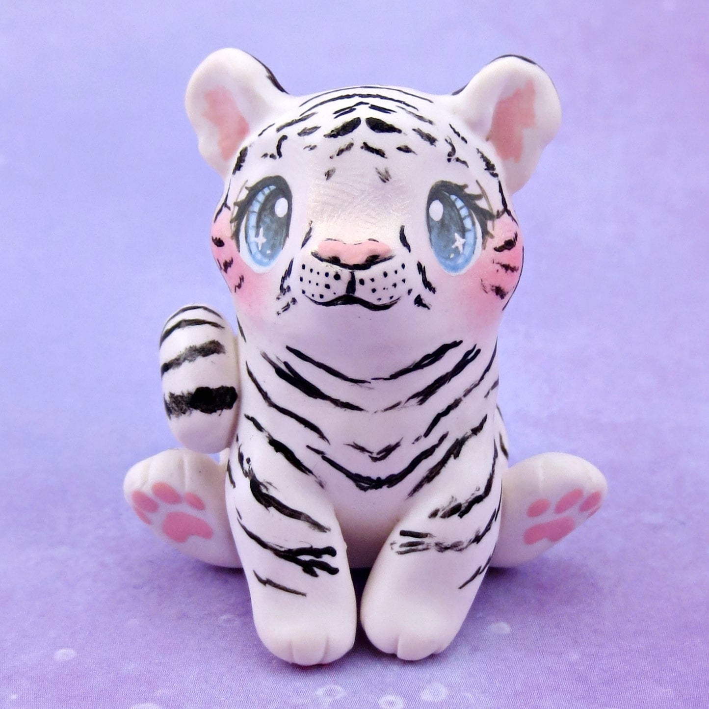 White Tiger Figurine - Polymer Clay Animals Continents Collection