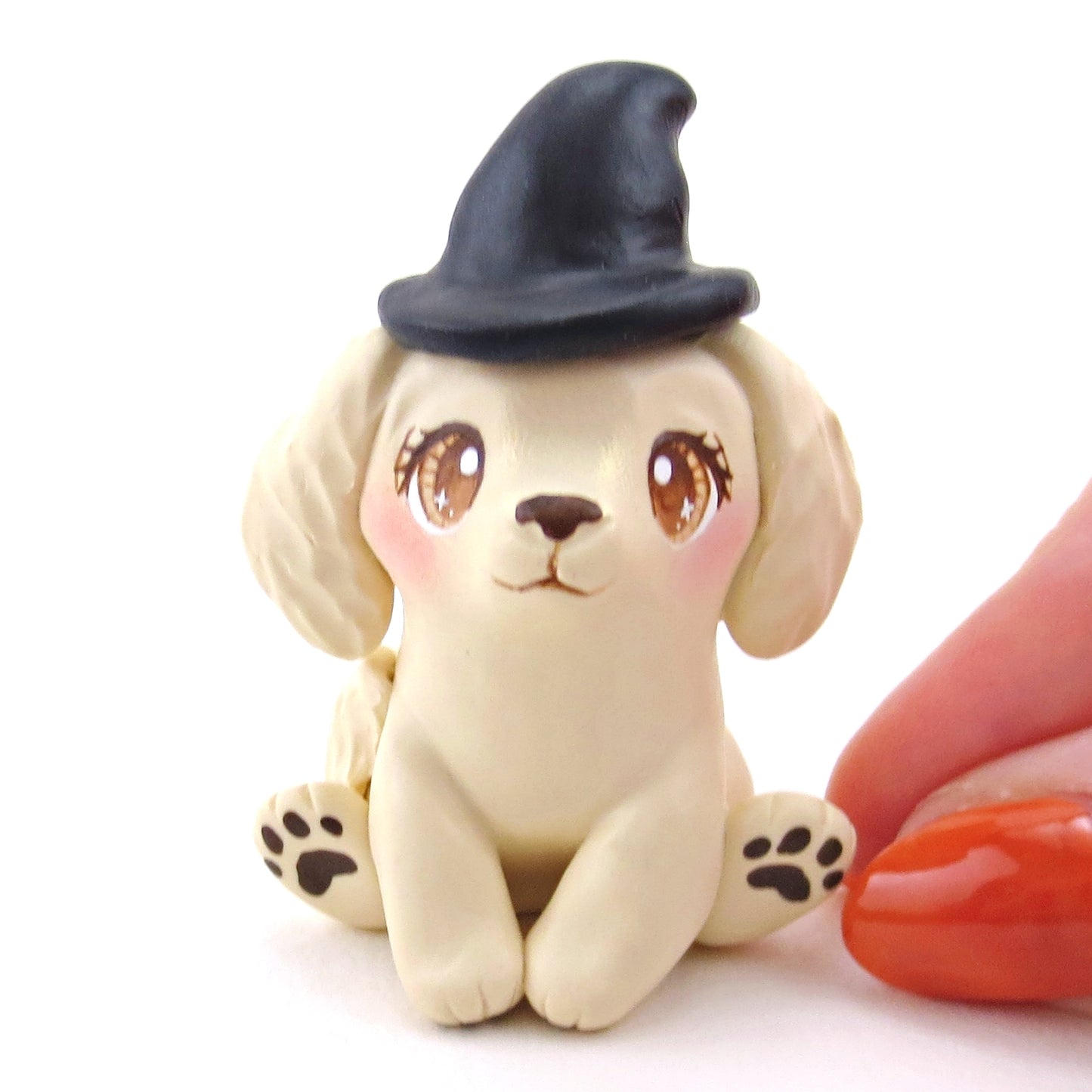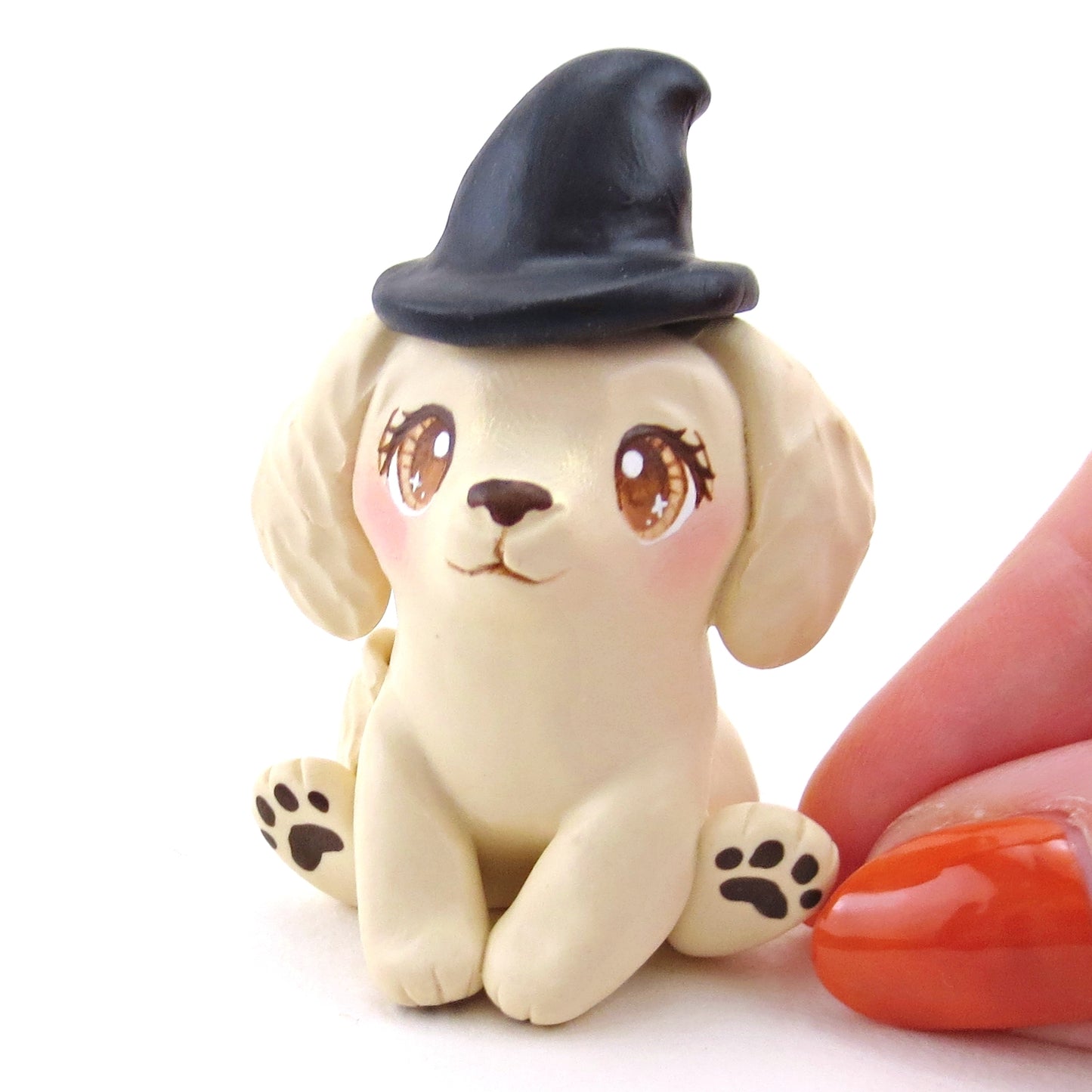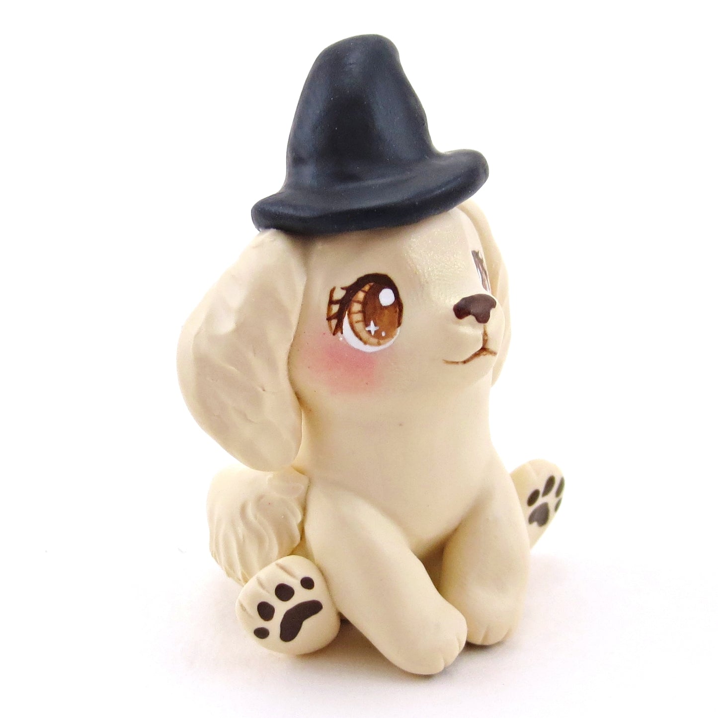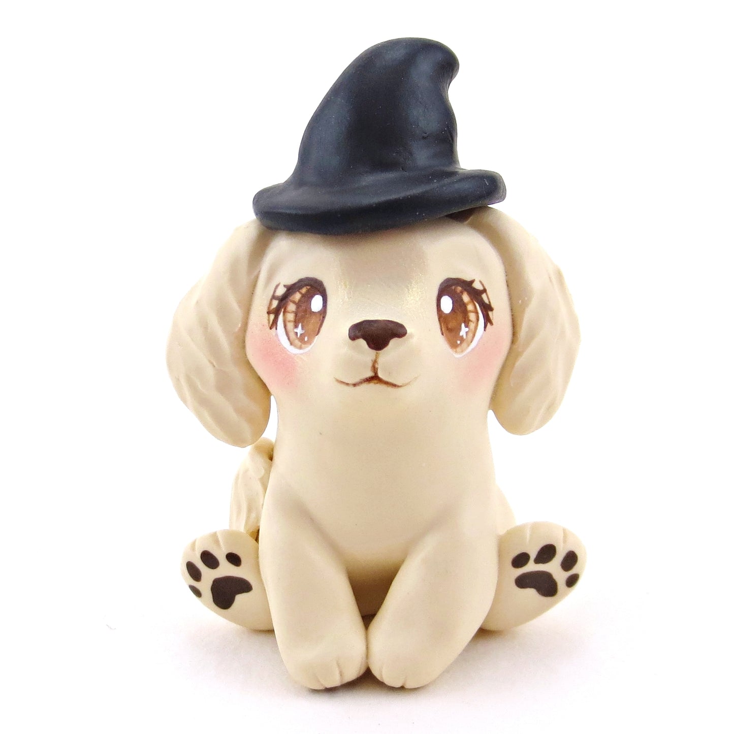 Witch Hat Golden Retriever Puppy Dog Figurine - Polymer Clay Animals Fall and Halloween Collection