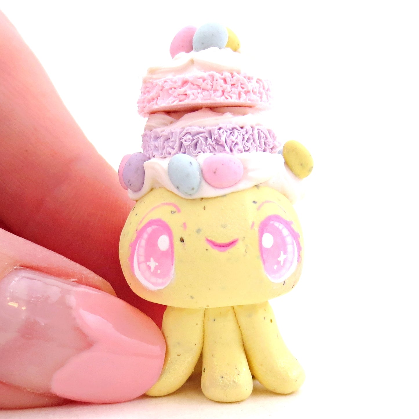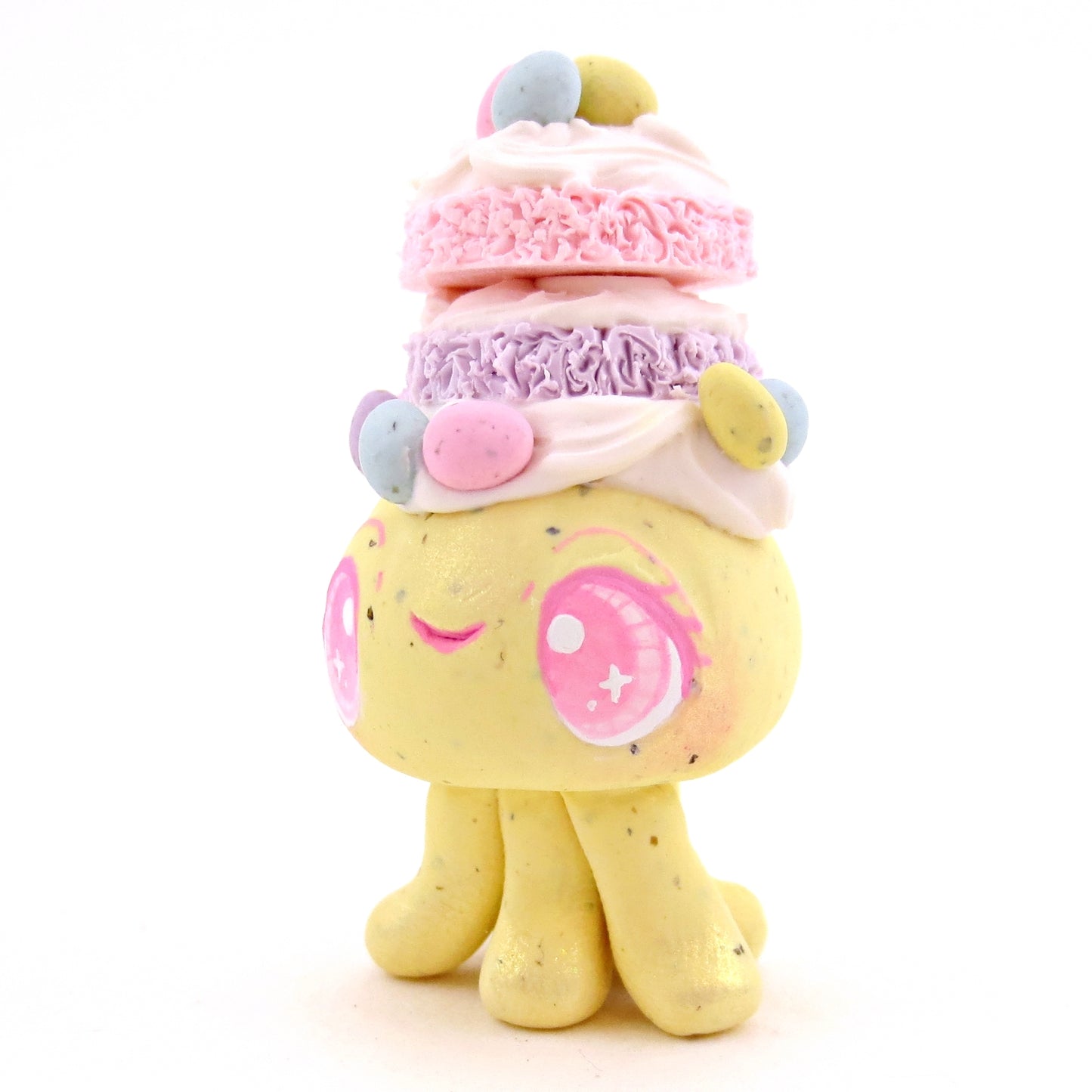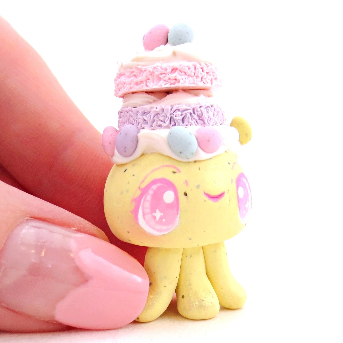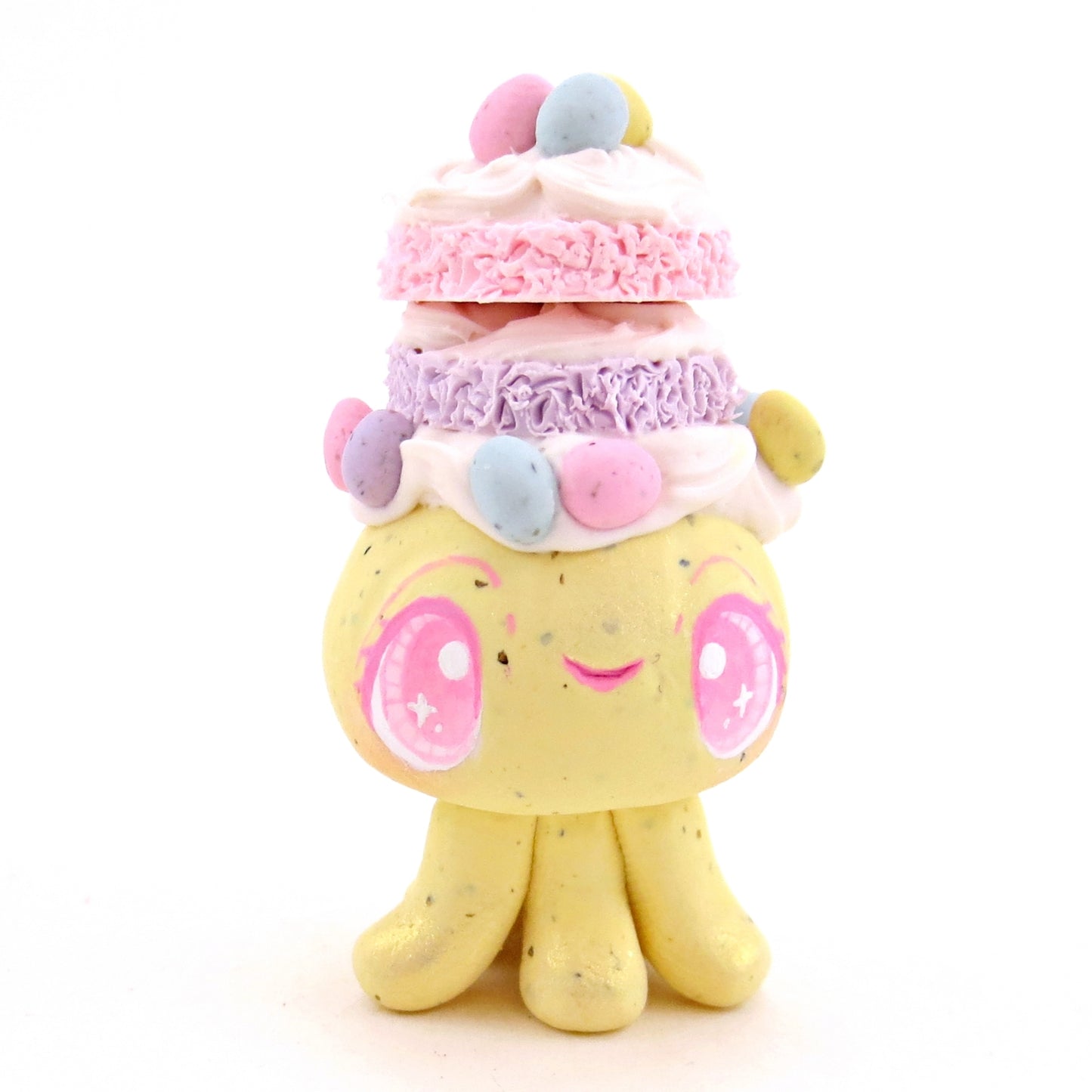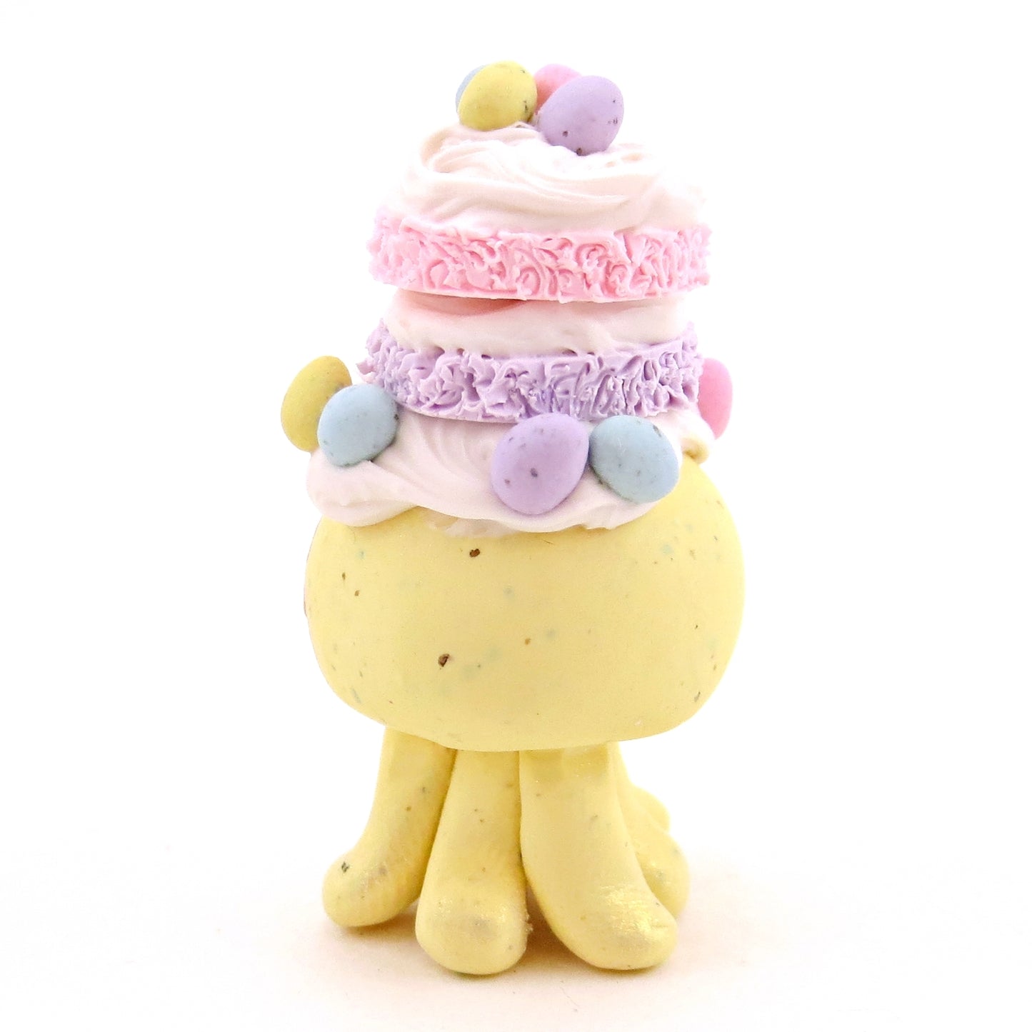 Yellow Speckled Egg Cake Jellyfish Figurine - Polymer Clay Easter Animal Collection